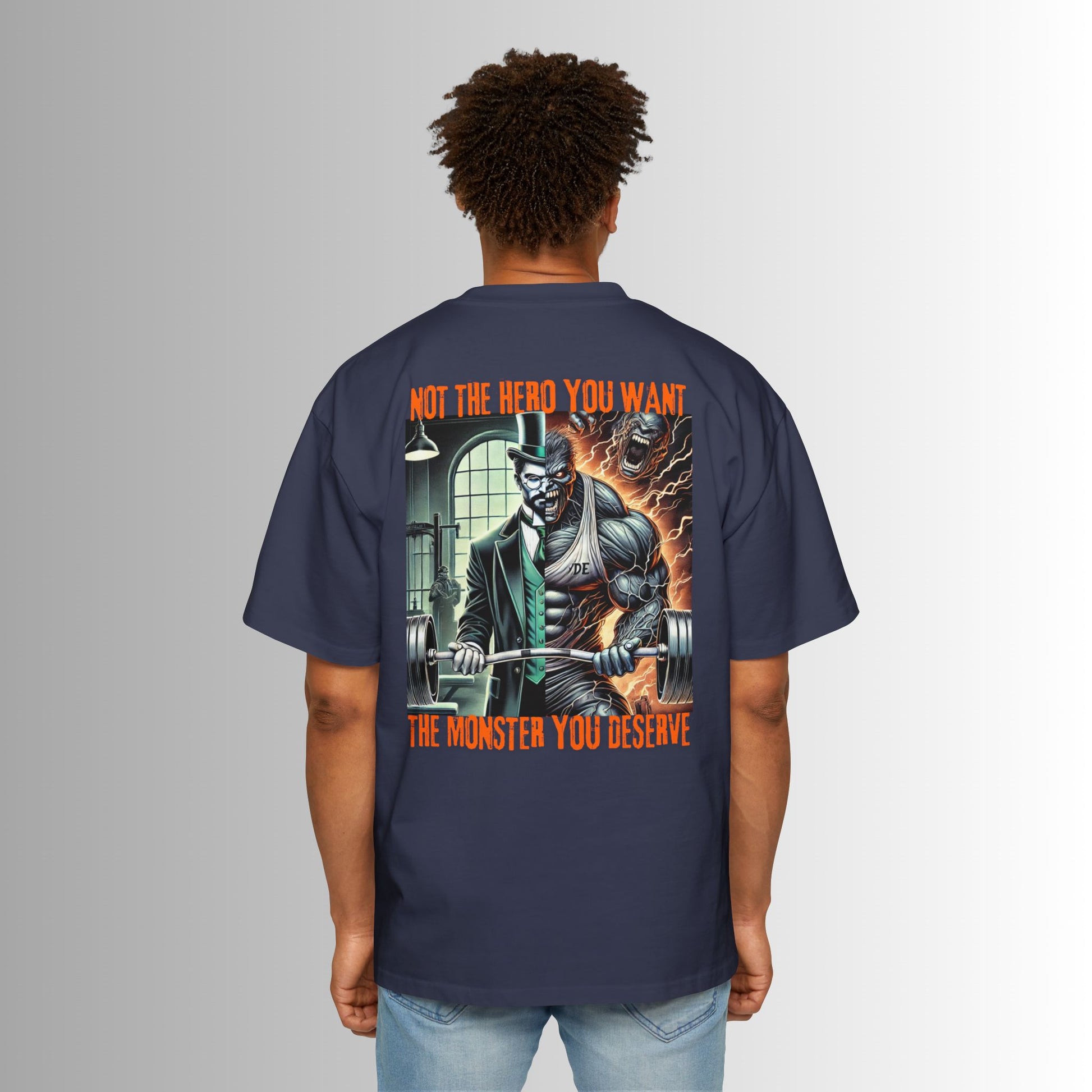 This oversized tee carries attitude and story in every stitch. Front text reads like a signature—raw and handwritten—while the back erupts with neon horror-core artwork and the line: “Not the hero you want / The monster you deserve.” The weighty, medium-heavy cotton drapes with purpose, giving the design room to breathe and the wearer a confident, lived-in silhouette. Wear it to late-night shows, gritty photo shoots, or just when you want your wardrobe to speak louder than words. The sewn-in label and double-stitched hems mean this shirt will age well, while dropped shoulders and an oversized cut keep movement loose and effortless. Colors with subtle heathering add depth to the print, letting the neon palette pop against earthier bases.