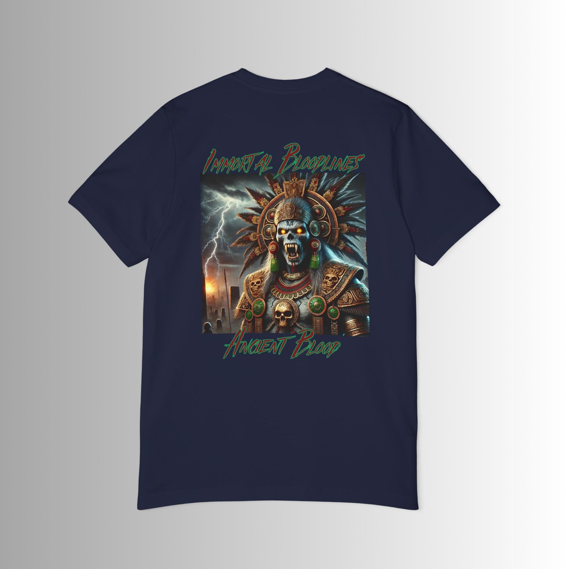 Time to wear a daily favorite, a design that reflects the duality of the Aztec Priests - both revered and feared in equal measure. Ancient beings who bloodlines continue through the ages. Each piece carries the weight of ancient power, the mystery of eternal life and the dark beauty of the night. Through Immortal Bloodlines, the legend of the Tlacaelel lives on and this version is with the Bella Canvas 3001U short-sleeve jersey tee. Made with 100% airlume, pre-shrunk, combed and ring-spun cotton for total comfort. All tees come with a retail fit that is comfy in any setting and are made in the USA with imported fabric.