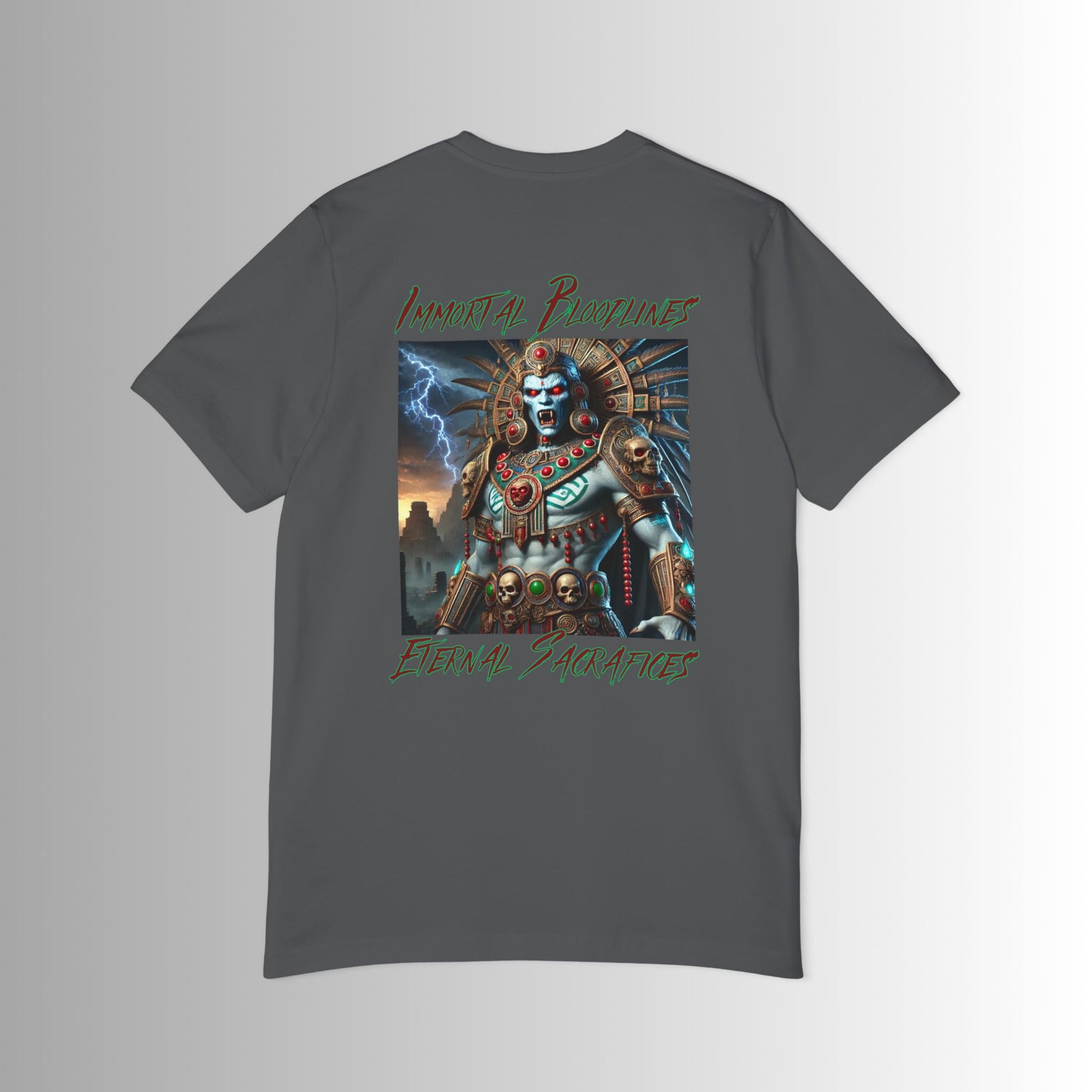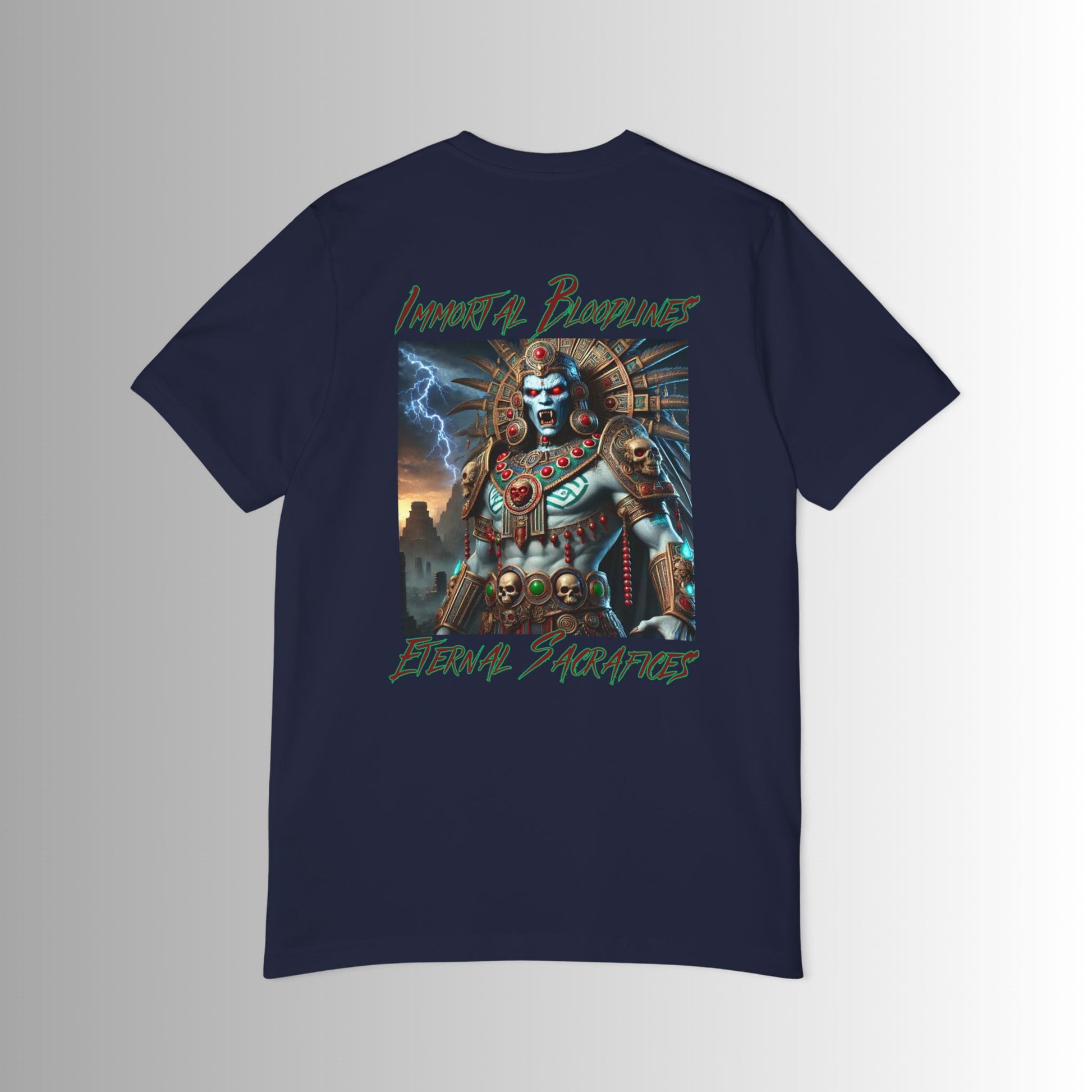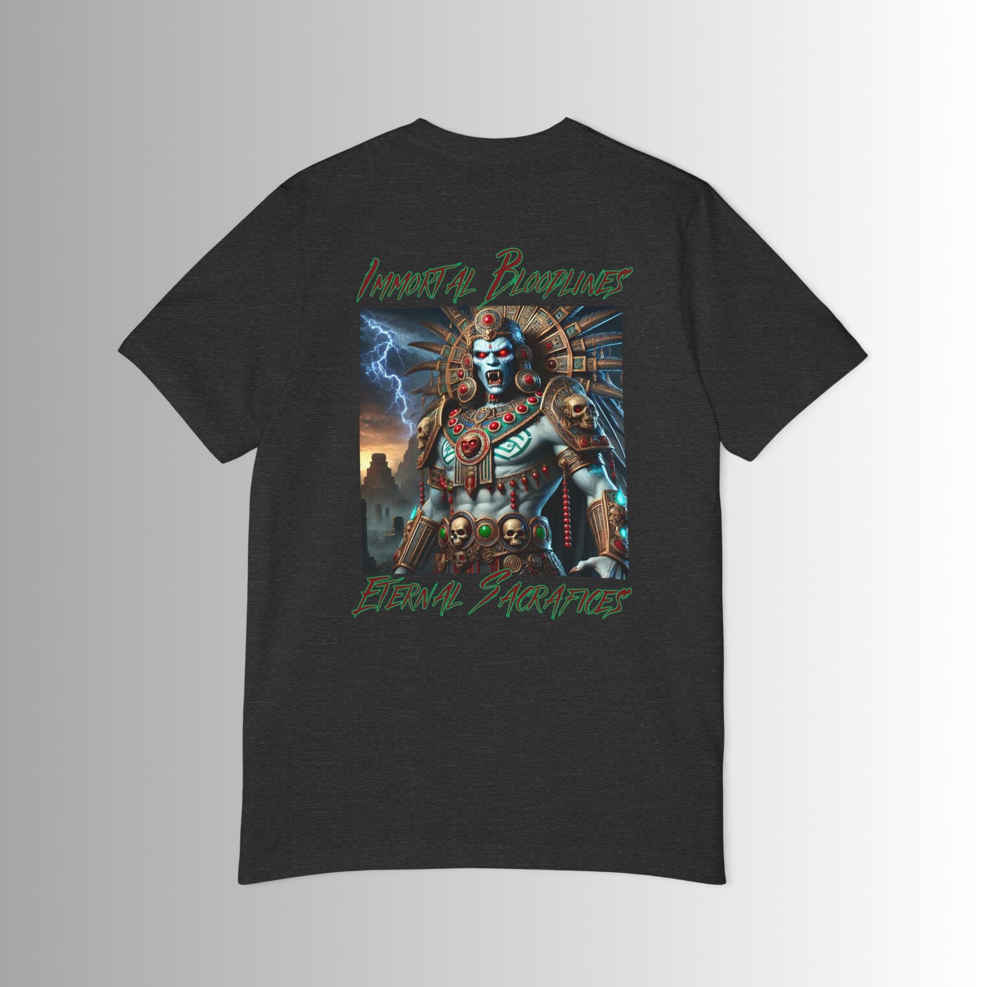 Time to wear a daily favorite, a design that reflects the duality of the Aztec Priests - both revered and feared in equal measure. Ancient beings who bloodlines continue through the ages. Each piece carries the weight of ancient power, the mystery of eternal life and the dark beauty of the night. Through Immortal Bloodlines, the legend of the Tlacaelel lives on and this version is with the Bella Canvas 3001U short-sleeve jersey tee. Made with 100% airlume, pre-shrunk, combed and ring-spun cotton for total comfort. All tees come with a retail fit that is comfy in any setting and are made in the USA with imported fabric.